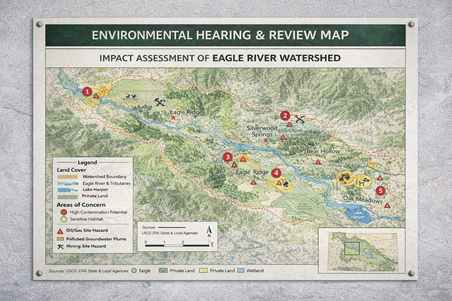 When you need to present yourself before regulators, stakeholders, and clients, consider supplementing your usual environmental research with a bespoke map product. Clear and attractive visuals are often more effective for communicating than reams of well researched documentation, and can often reach people in ways that facts and data alone can't. Backed up by our massive database, we can usually find exactly what parts of an environmental concern most need highlighting, or work with you to make exactly the points your team is focused on.